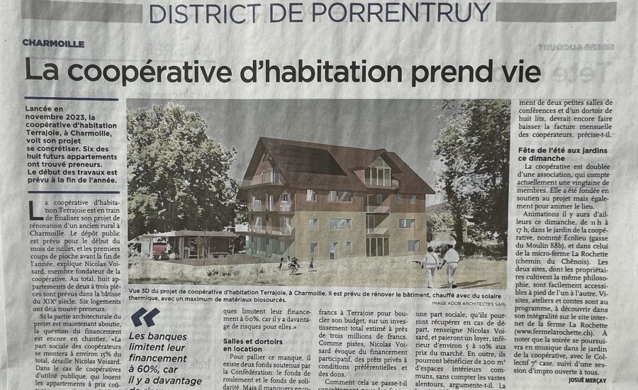 Lancée en novembre 2023, la coopérative d’habitation Terrajoie, à Charmoille, voit son projet se concrétiser. Six des huit futurs appartements ont trouvé preneurs. Le début des travaux est prévu à la fin de l’année. Infos